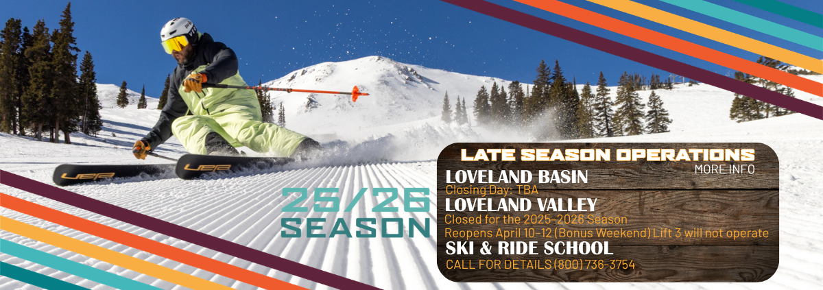 Near to the hearts and homes of Colorado skiers and riders for nearly 90 years, family-owned Loveland Ski Area is Colorado’s true winter home. Just 53 miles west of Denver, Loveland offers 1,800 acres of legendary terrain, FREE close-in parking, and FREE snowcat skiing along the Continental Divide. With an innovative Ski & Ride School program, more snow than any Front Range or Summit County resort, and one of the snowiest, longest seasons in North America—late October through early May—Loveland delivers the best deals in Colorado on season passes, lift tickets, and lessons, keeping skiing and riding accessible, affordable, and authentic. No crowds. No hassles. Just Colorado’s pure winter experience.